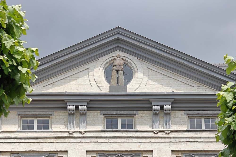 Een ander hoogtepunt waarbij rotsen een rol spelen is te vinden bij College De Valk, ook weer zo’n prachtig gebouw dat bij de universiteit hoort. Met behulp van grove rotsblokken maakte kunstenaar Ugo Rondinone een primitief mensfiguur die bovenaan de gevel van het gebouw is geplaatst. Een bijzonder contrast en door de context ook een werk dat heel veel interessante vragen oproept. De informatieborden op alle locaties en/of de info die te vinden is in de app van de kunstroute helpen bij het doorgronden van elk kunstwerk.