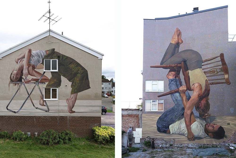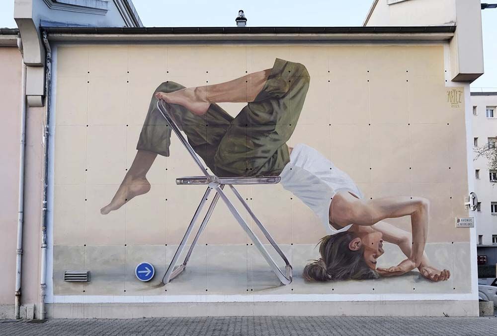 Zo is er in het werk van de uit Belgrado afkomstige kunstenaar Artez van alles te ontdekken als je meerdere muurschilderingen van hem achter elkaar bekijkt. Zo blijkt dus dat er sprake is van een serie die Simple Acrobatics waarbij heel veel werken (min of meer) dezelfde titel hebben en hetzelfde thema. Het gaat om personen in een ongewone, acrobatische pose. Soms samen met een ander en soms met behulp van een doodgewone stoel.