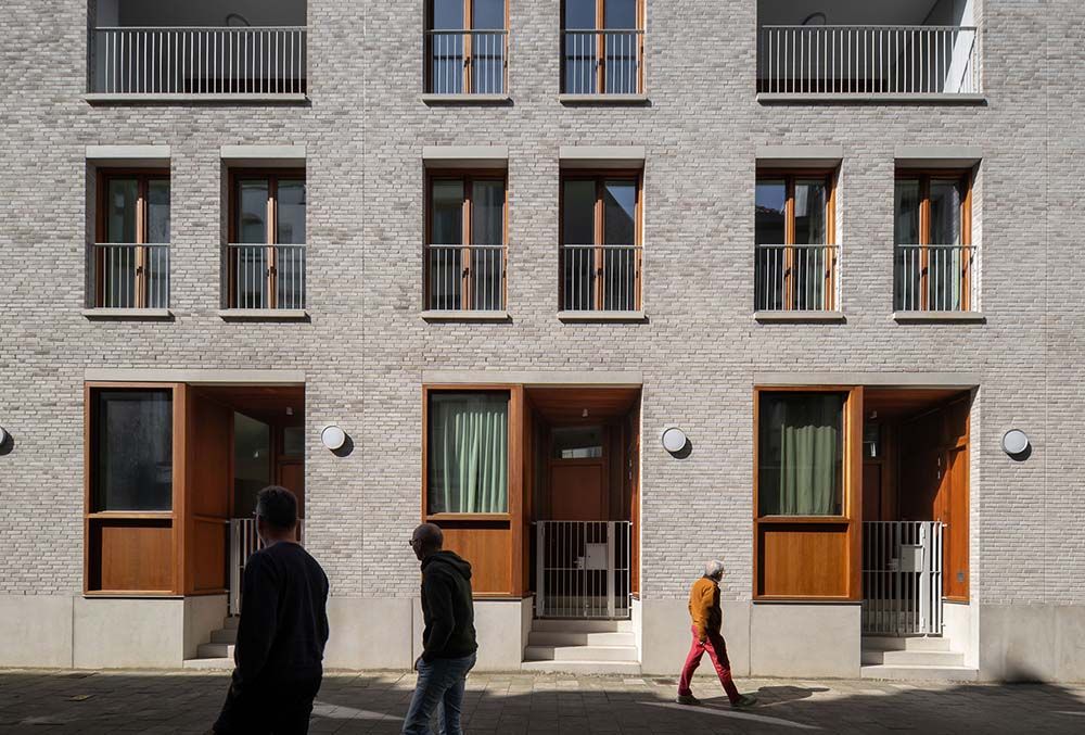 Er is veel aandacht besteed aan de overgang tussen privé en publiek domein op straatniveau. In plaats van conventionele gelijkvloerse appartementen introduceert het ontwerp zeven ‘maisonettewoningen’ met verhoogde en individuele voordeuren die uitzicht bieden op de straat en tegelijkertijd de privacy van de bewoners waarborgen.