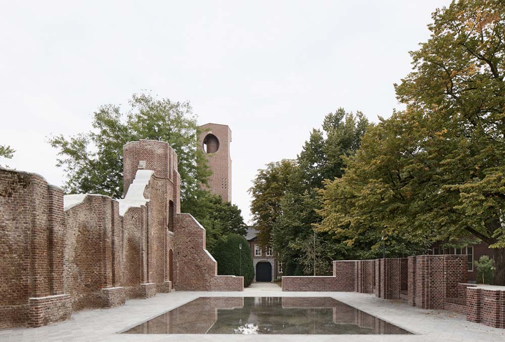 De tuin werd verder versterkt door een "verdwijnvijver" in de vloer van de kerkruïne. Deze vijver weerspiegelt de verdwenen helft van de kerk, maar kan ook drooggelegd worden, waardoor de ruimte kan dienen als verharde ontmoetingsplek voor evenementen.