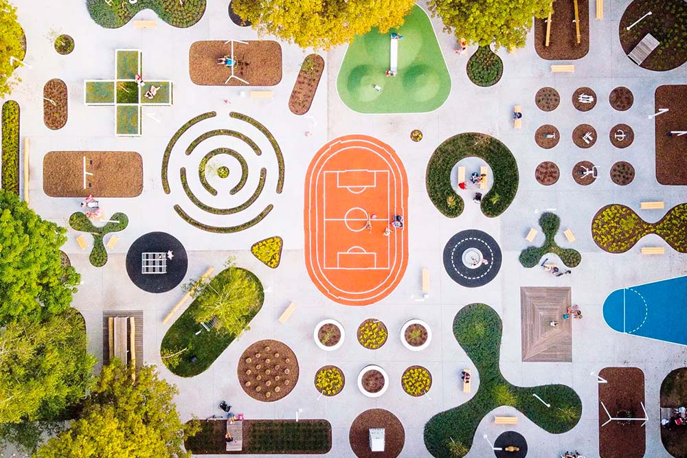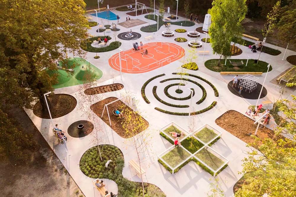 In veel parken en plantsoenen zijn speelvoorzieningen voor kinderen en jongeren te vinden. Vaak is het zo dat niet elke doelgroep er terecht kan. In het Poolse Chorzów hebben ze het daarom heel anders aangepakt.
