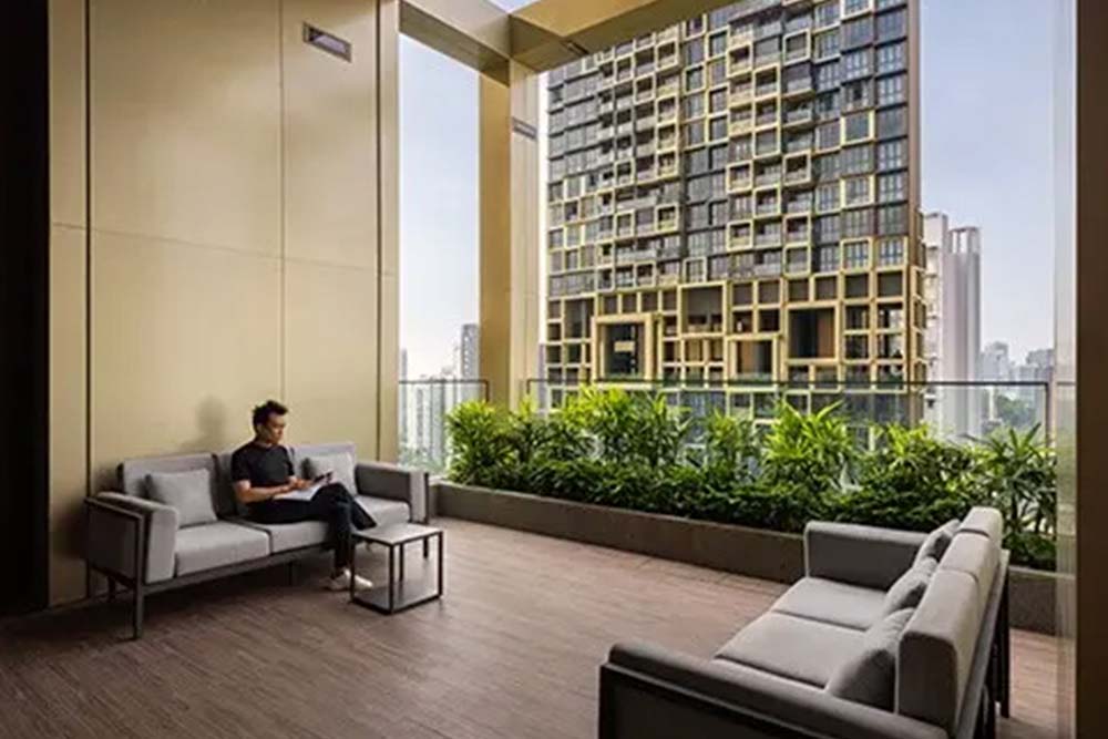 Irwell Hill Residences, ontwikkeld door City Developments Limited (CDL), is MVRDV’s eerste samenwerking aan een gebouw in het centrum van Singapore. Het ontwerp van ADDP maakt gebruik van PPVC (geprefabriceerde volumetrische constructie), waarbij complete ruimtes in de fabriek worden geproduceerd en op locatie worden gestapeld. Deze veelgebruikte bouwmethode in Singapore vermindert bouwtijd, verstoringen, afval en bouwgerelateerde CO₂-uitstoot, en wordt gestimuleerd door regelgeving en kaders van de nationale Building and Construction Authority.