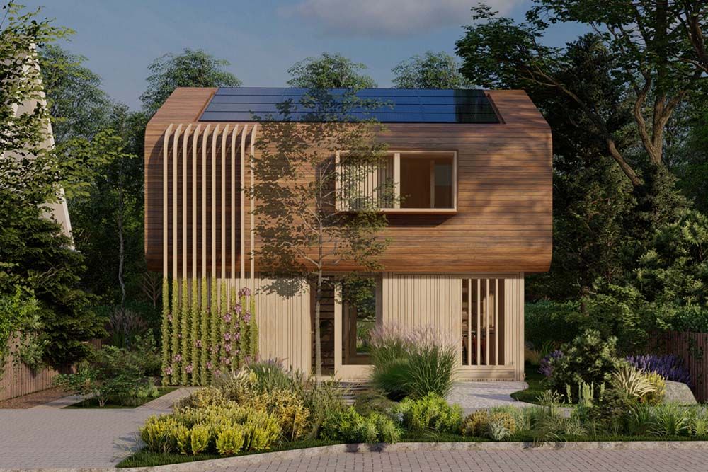 De woning is opgebouwd uit hernieuwbare materialen zoals Houtskeletbouw-gevelelementen, cross laminated timber-wanden, en gelamineerde houten spanten. De gevel is bekleed met gecertificeerd iroko en bamboe, en geïsoleerd met houtvezel. Binnen zijn de ruimtes visueel met elkaar verbonden via een vide boven de keuken, terwijl subtiele afscheidingen zorgen voor privacy. De houten verdiepingsvloer bevat een systeem dat de luchtbehandeling via de vloer regelt.