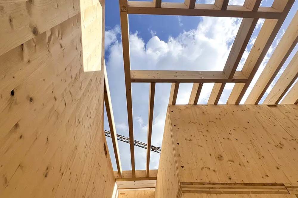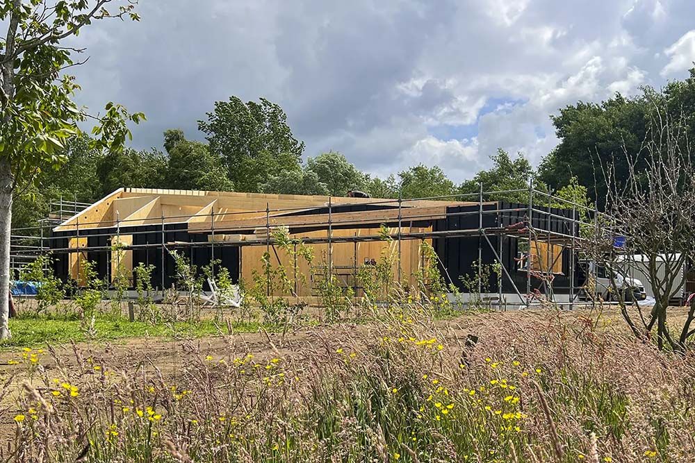 De architect koos voor een constructie uit HSB met CLT en isolatie van cellulose en houtvezel. De gevel is gemaakt van thermisch gemodificeerd Fraké hout met KEIM voorvergrijzer. De kozijnen zijn tot slot vervaardigd van thermisch gemodificeerd, gevingerlast en gelamineerd Fraké hout.