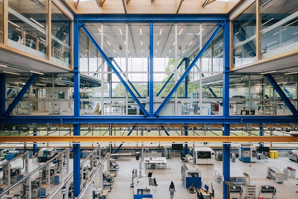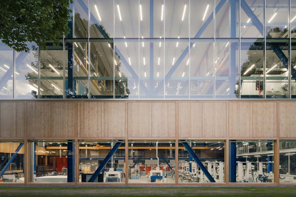 Aan de faculteit Engineering Technology van de Universiteit Twente in Enschede (NL) is het nieuwe gebouw CUBE toegevoegd. Het gebouw door CIVIC architects functioneert als een zichtbare etalage van de ontwerp- en maakpraktijk binnen de opleiding. Bij binnenkomst kijken bezoekers uit over de verdiept gelegen metaal- en laswerkplaats en via een vide zijn ook de bovenliggende werkplaatsen zichtbaar. Studenten en onderzoekers werken op verschillende niveaus aan machines, prototypes en practica met zicht op het omliggende campuslandschap.