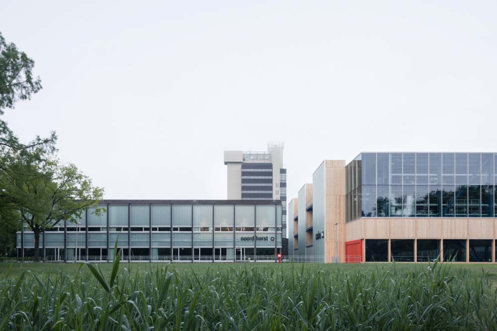 CUBE voegt zich in het modernistische Horstensemble uit de jaren zestig, maar reageert op actuele klimaat- en gebruikseisen. Het gebouw is opgezet als een compacte satelliet met een extra verdieping, zodat het oorspronkelijke ensemble leesbaar blijft. De gevels verschillen per oriëntatie: transparant aan de noordwestzijde voor daglicht en zicht, gesloten aan de zuid- en westzijde om opwarming te beperken.