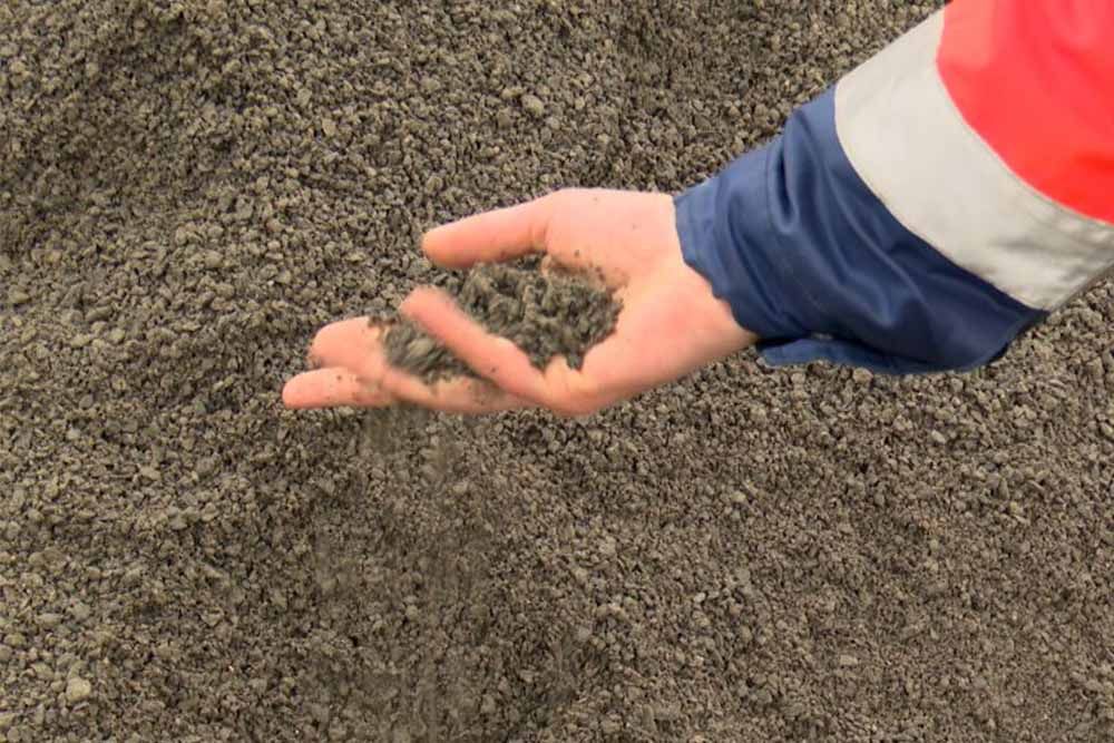 "Dit zand komt van overschotten van de vernieuwing van luchthaven Oostende", zegt Pieter De Brabandere, de CEO van De Brabandere Eco Materials. "Er is daar een pak goed puin . Eigenlijk een urban mining van Oostende en Veurne en gebruiken we het. Wat we hier doen is een antwoord geven op de schaarste van zeezand. Ook rivierzand staat onder gigantische druk."