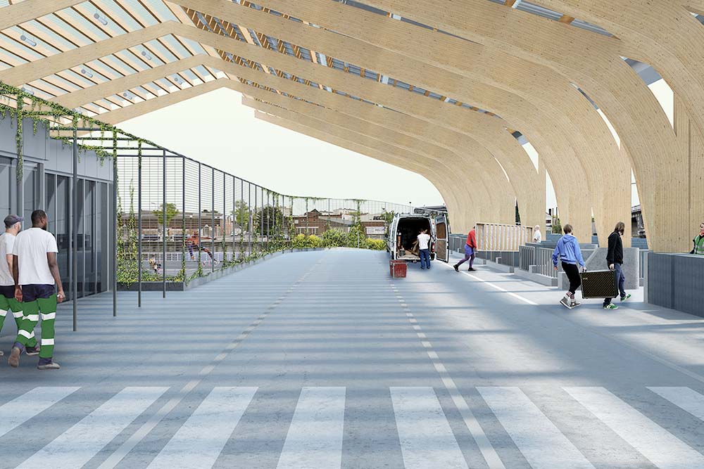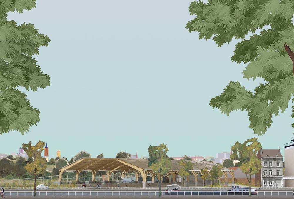 Constructie van een Recypark in Anderlecht met vlak ernaast een overdekte openbare ruimte (met onder meer een skatepark) van 2.165 m², door 51N4E