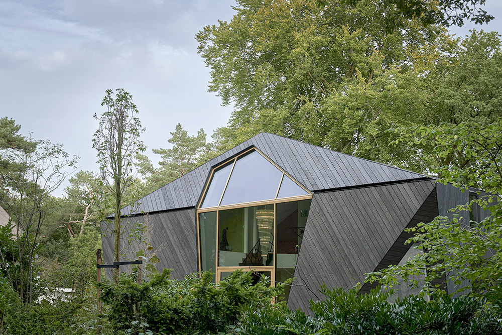 Aan de rand van het bos in Hilversum staat Diamond House, een villa die qua vormgeving doet denken aan de edelsteen waarnaar het vernoemd is.