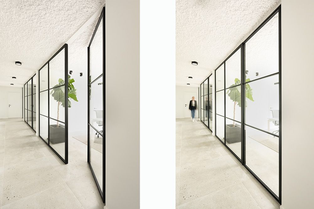 Divina Pivotica met gebogen profielen: creatieve upgrade voor een glaswand met pivotdeur