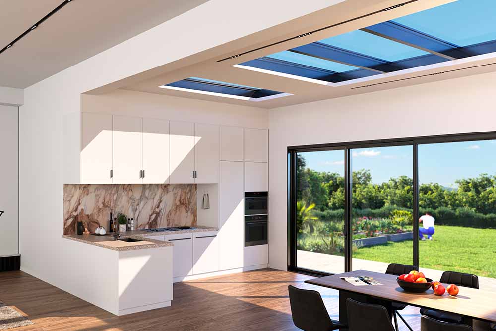 Ons nieuwe lichtstraatsysteem biedt tijdloze oplossingen voor eigentijdse projecten. Zo is het systeem een duurzaam verlengstuk van je woonbeleving: dankzij deze glazen constructie creëer je niet alleen een ruimer woongevoel binnenshuis, je laat ook een grotere hoeveelheid natuurlijk daglicht tot diep in je woning stralen.