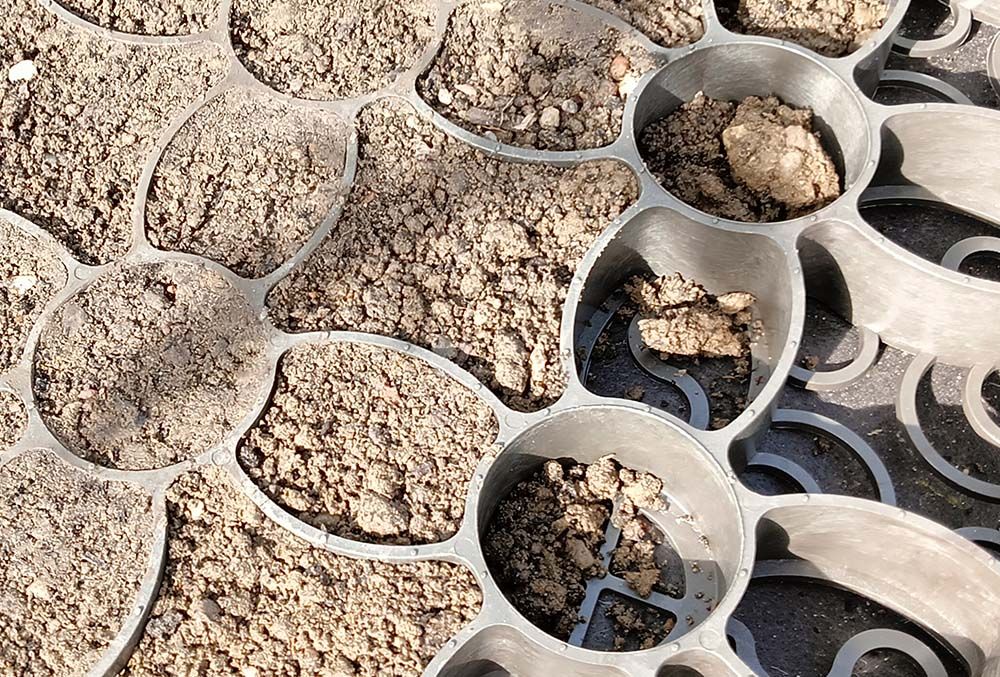 Met deze plaat kunnen klinkers, gras en grind gecombineerd worden om gepersonaliseerde berijdbare zones te creëren. Ideaal voor het afbakenen van zones en het aanbrengen van markeringen in klinkers (PBM, enz.). Robuust en bestand tegen belastingen tot 450 t/m².