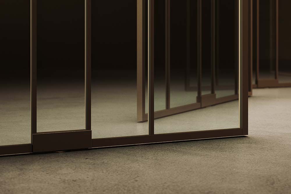 Met extra ‘traverse’ profielen – onder meer de nieuwe gebogen profielen – op het glas van de pivotdeur (of vaste glaswand) gekleefd, past je divina nog beter bij de uitstraling van het interieur. Ook de draai- en schuifdeuren, en hoek- en eindprofielen in het assortiment dragen bij aan het eindeloos configureerbare systeem. De profielen van een divina-glaswand en pivotdeur kunnen zowel met poederlak als geanodiseerd afgewerkt worden en zijn verkrijgbaar in drie standaardkleuren (zwart, wit of grijs), acht extra kleuren op aanvraag of zelfs volledig op maat van je project. Afwerken kan naar wens ook met verschillende soorten figuurglas zoals kathedraalglas, flutes of gehamerd glas.