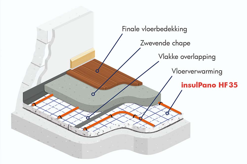 Als antwoord op deze beperkingen heeft insulco, de Belgische specialist in chape onderlagen sinds meer dan 35 jaar, een unieke en innovatieve oplossing ontwikkeld. Naast het bieden van uitzonderlijke akoestische prestaties en het voldoen aan de thermische normen tussen verdiepingen, maakt de insulPano HF35 het mogelijk om de vloerverwarmingsbuizen met ‘tackers’ te bevestigen!