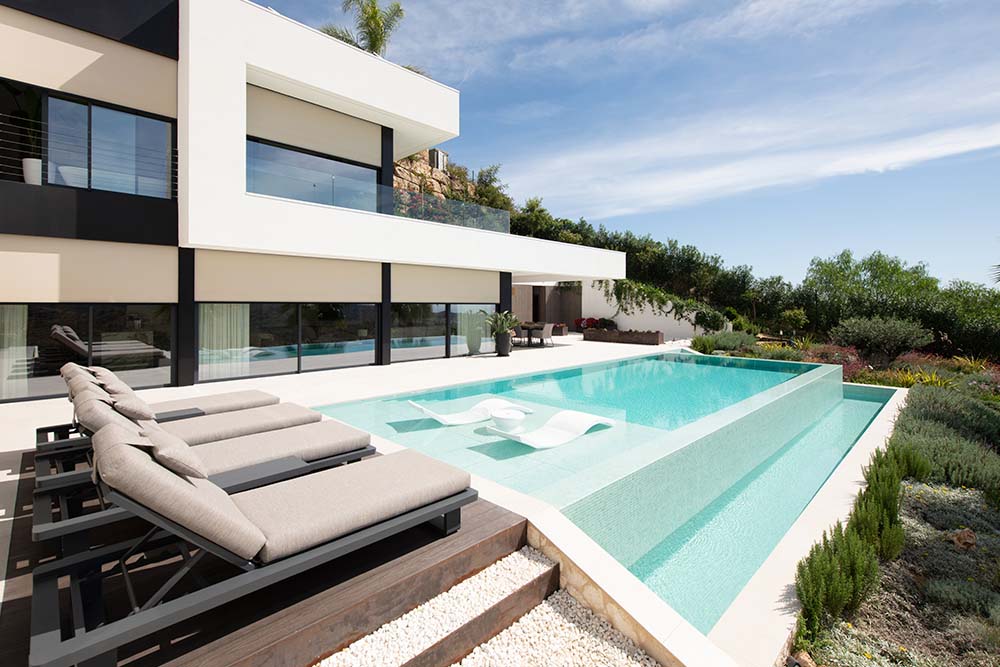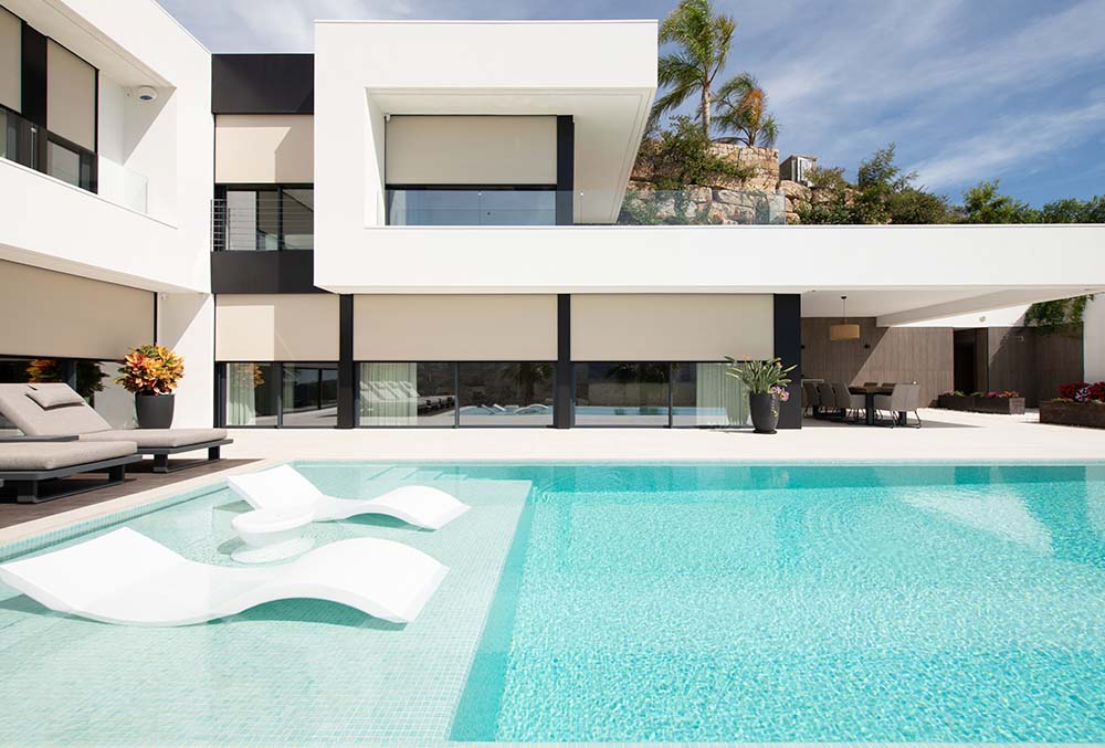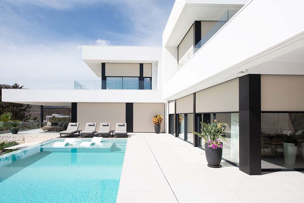 In Villa Paz (Spanje) kom je helemaal tot rust. Dit luxueuze vakantiehuis ligt op een omheind perceel en kijkt uit over het glooiende, groene berglandschap met de zee aan zijn zijde. De ongerepte natuur en de zomerse sfeer komen maximaal binnen in de woning via de grote raampartijen. Toch blijft het zelfs op het hoogtepunt van de zomer aangenaam koel in het vakantiehuis. Het geheim? De uitkragende terrassen en de Fixscreens van Renson.