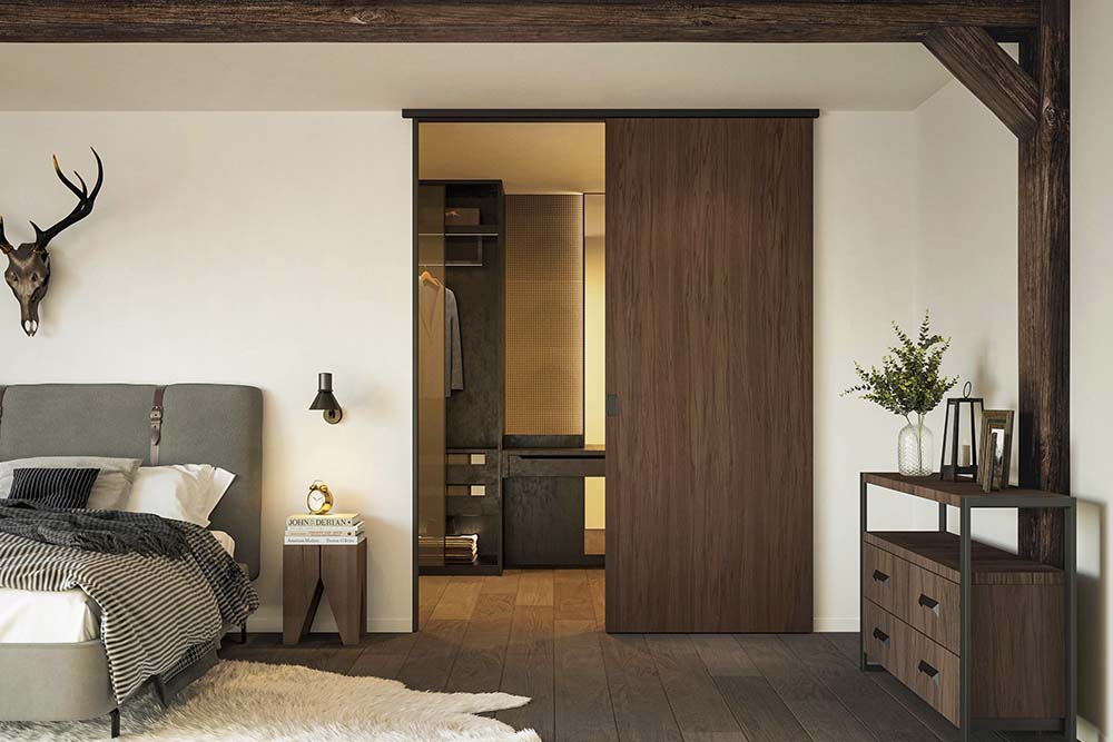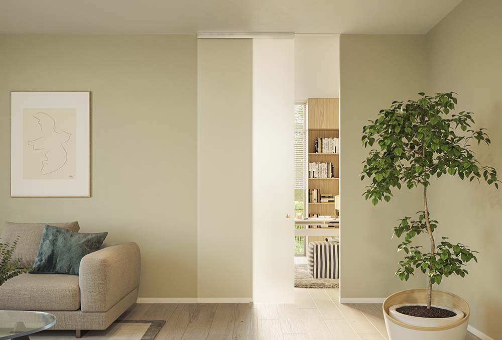 De ‘manual-’ of ‘auto-fix’ ophanging is compact en onzichtbaar. Maar wanneer frezen in het houten deurblad niet mogelijk is, voorziet een ophangbeugel de sterke koppeling tussen deurblad en rol in de plaats. Glazen deuren worden opgehangen met behulp van een universele glasklem voor 8, 10 of 12 mm dik glas. Een ondergeleider in zamak met kunststof afwerking zorgt in combinatie met een aluminium geleidingsprofiel voor een stevige maar zachte geleiding. Glazen deuren lopen in een U-vormige geleider met zacht vilt.