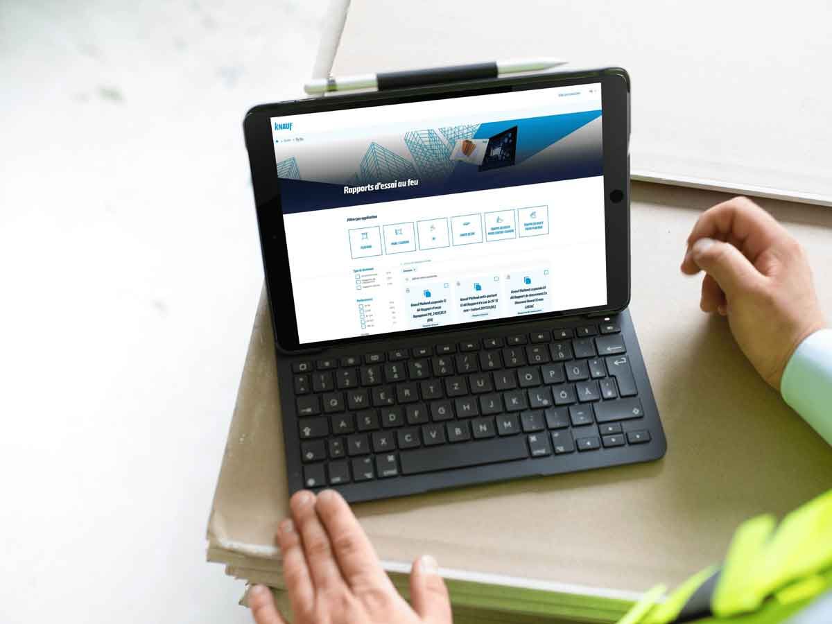 Knauf innoveert met een digitaal platform geïntegreerd in zijn website. Met deze tool kunnen de meest recente testverslagen direct worden gedownload, geordend per systeemtype (wanden, plafonds, vloeren, enz.). Deze oplossing garandeert snelle en eenvoudige toegang tot betrouwbare en actuele gegevens, essentieel om de conformiteit van projecten te waarborgen.
