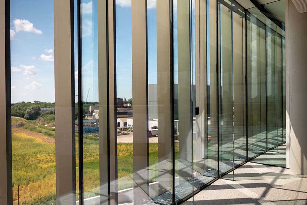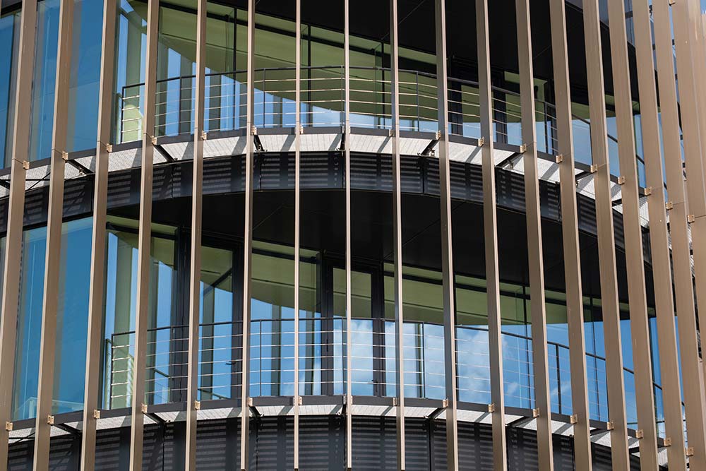 Samen met DUCO werd elk detail uitgepuurd: van de ritmiek van de lamellen tot de tint die de warme gloed van het metaal accentueert. Het resultaat is een gevel die meebeweegt met de zon, het binnenklimaat verzacht en tegelijk een spel van licht en schaduw tovert op de werkvloer.