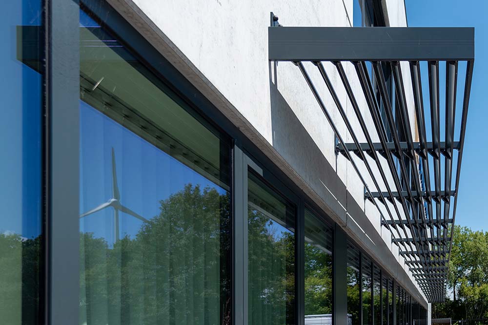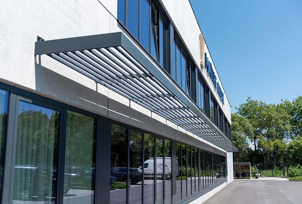 Voor Maître André was het cruciaal om een oplossing te vinden die de zonnehitte buiten houdt terwijl er voldoende daglicht binnenkomt - essentieel voor een productieve kantooromgeving waar precisie en kwaliteit centraal staan.