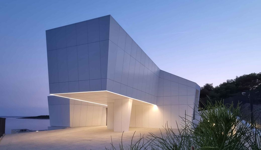 Gelegen aan de zuidkust van Korčula in Kroatië, vormt deze hedendaagse zomerresidentie een krachtig voorbeeld van witte modernistische architectuur die naadloos opgaat in het mediterrane landschap. Ontworpen door Robert Potokar en Sabina Colnar, presenteert de villa zich als een compositie van zwevende volumes, gericht op panoramische zeezichten en de horizon van de Adriatische Zee.